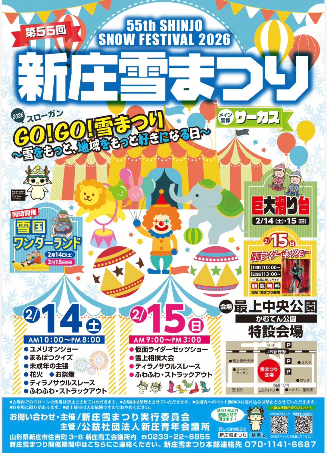 新庄雪まつり本部連絡先 TEL:070-1141-6687