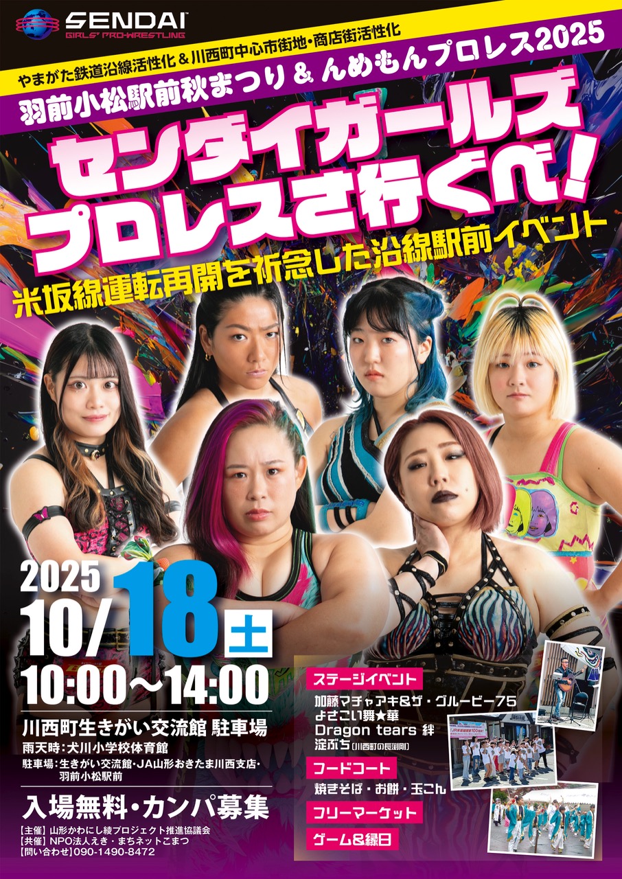 センダイガールズによるプロレスや、ステージイベント、フードコード、フリーマーケットの出店もあります。 ぜひご来場ください!