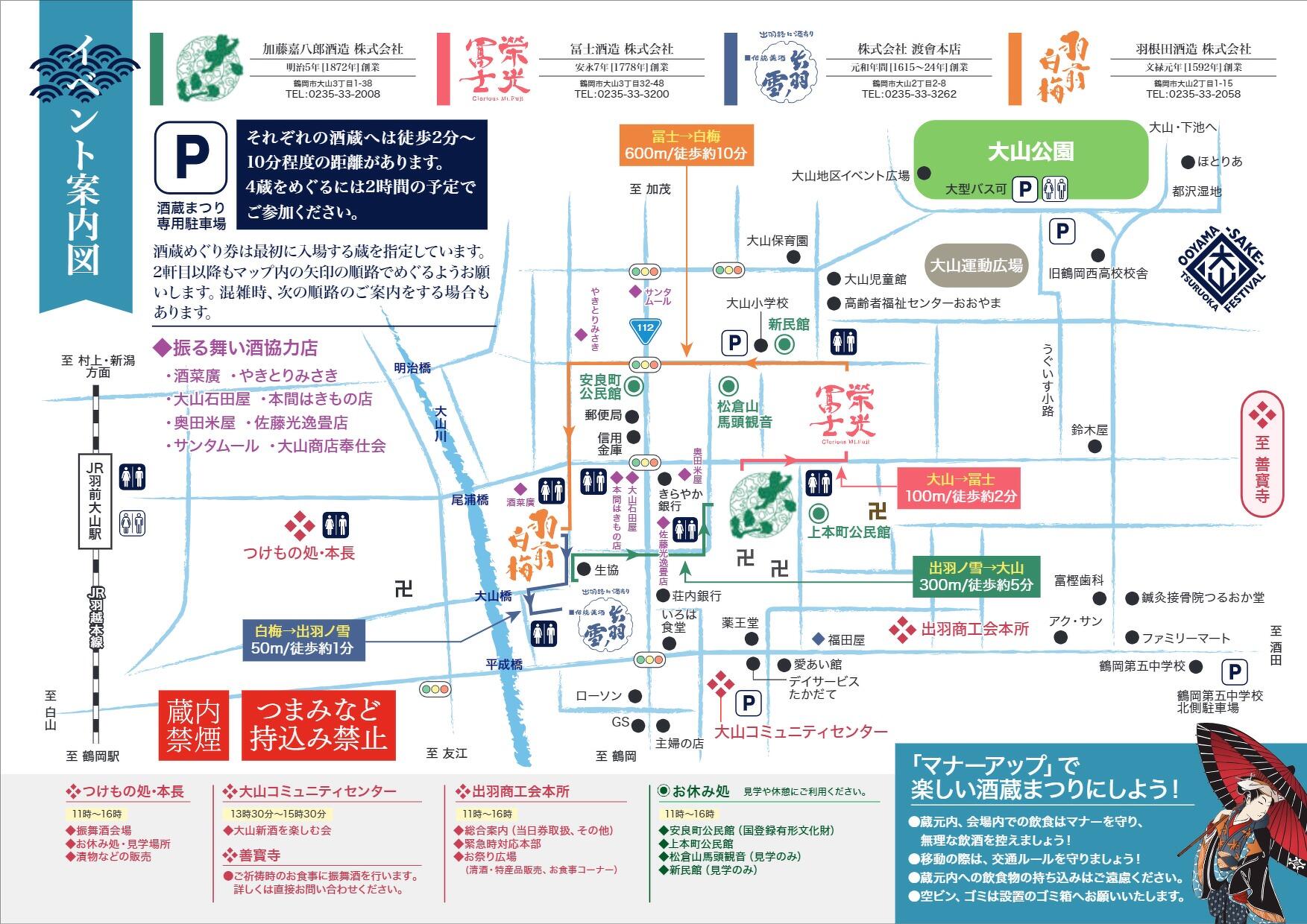 大山新酒・酒蔵まつり実行委員会 午前9時より午後4時まで 土曜、日曜、祝日、年末年始は閉館しております 出羽商工会本所:℡0235-33-2117 大山コミュニティセンター:℡0235-33-3213