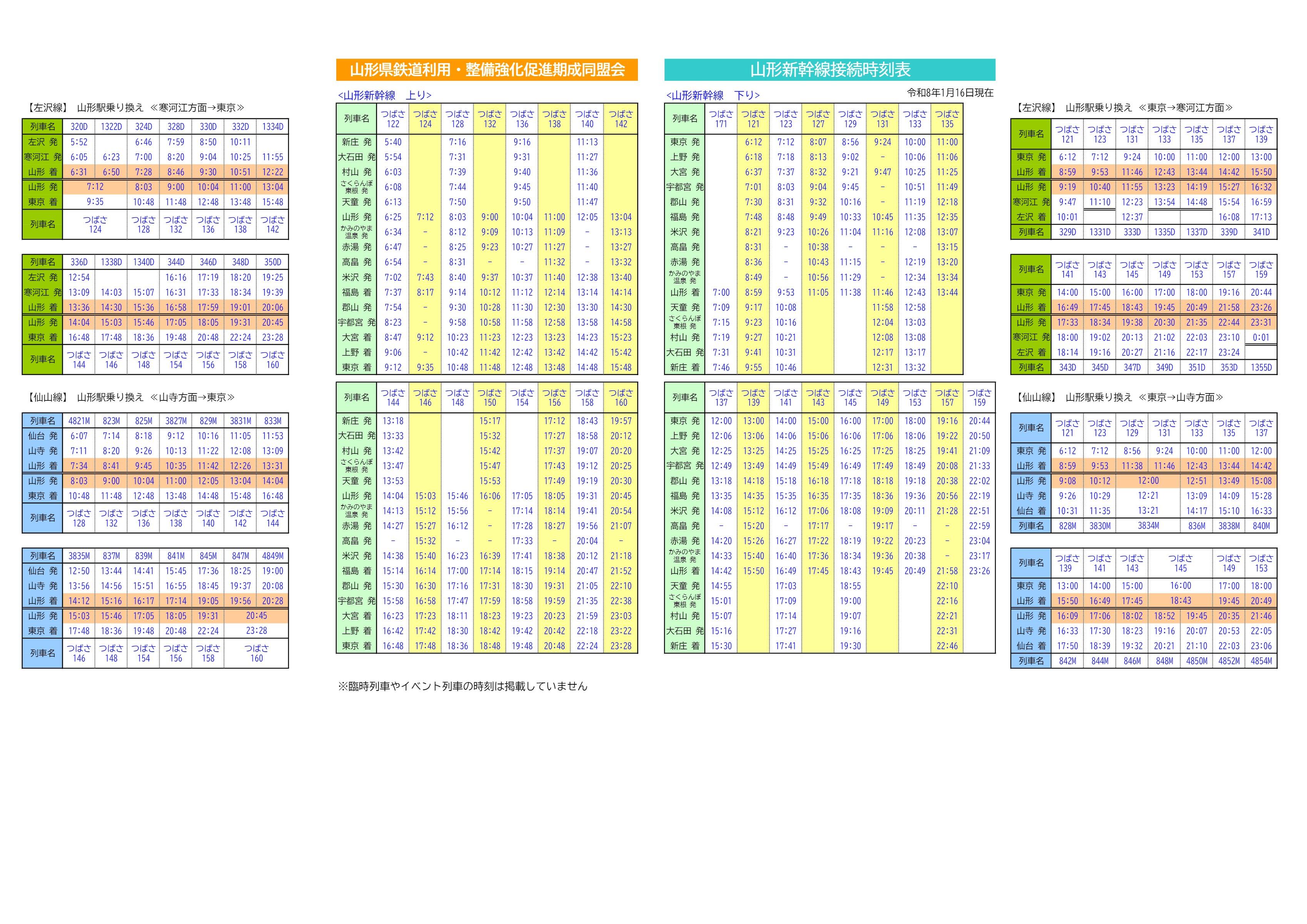 接続時刻表《令和8年1月16日現在》