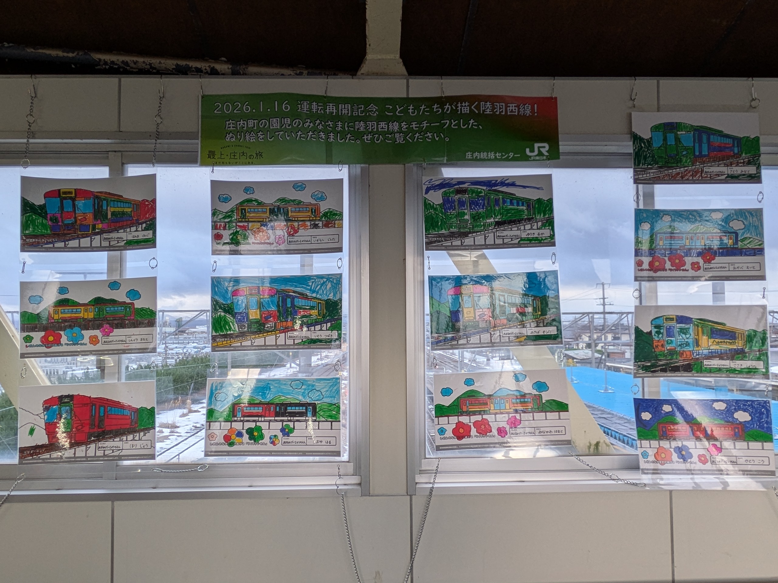 沿線 4 市町村(新庄市、戸沢村、酒田市、庄内町)の地元園児の皆さんからぬり絵を書いてもらいました!