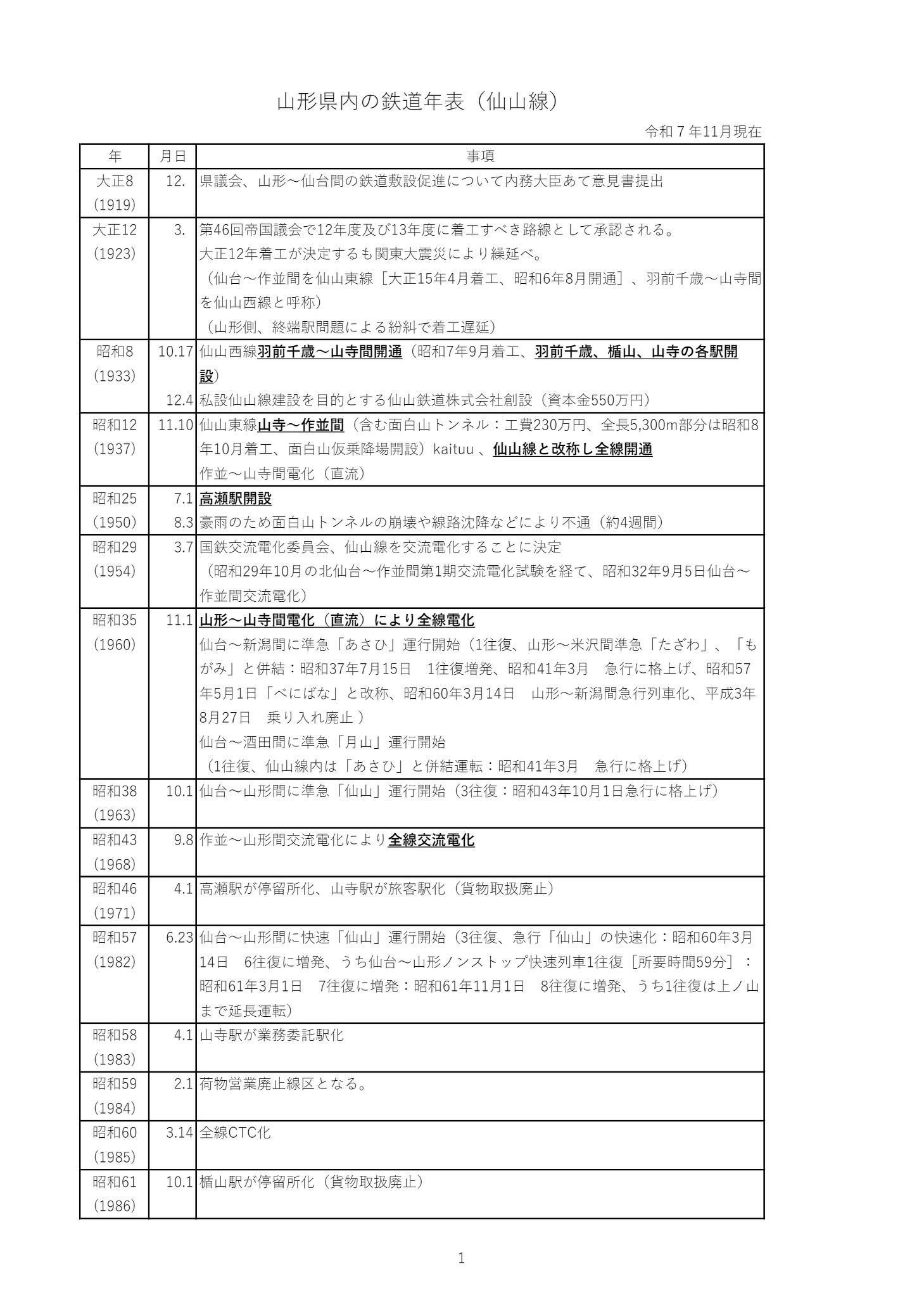 山形県内の鉄道年表(仙山線)