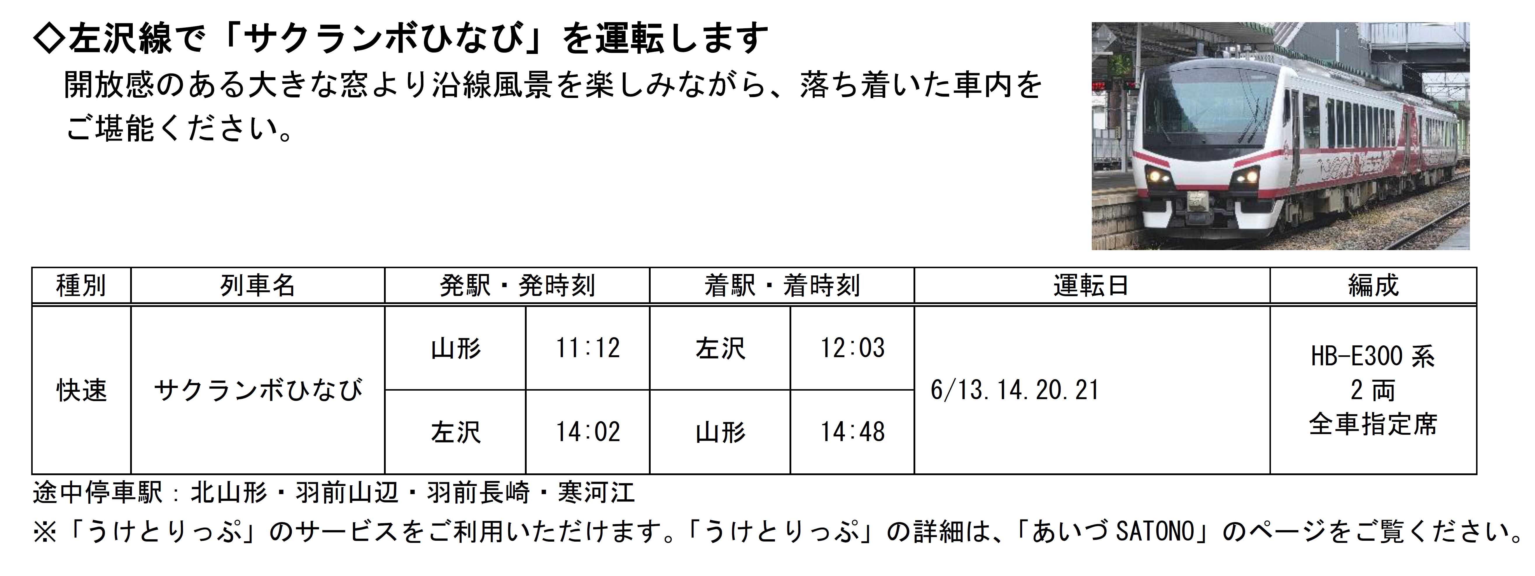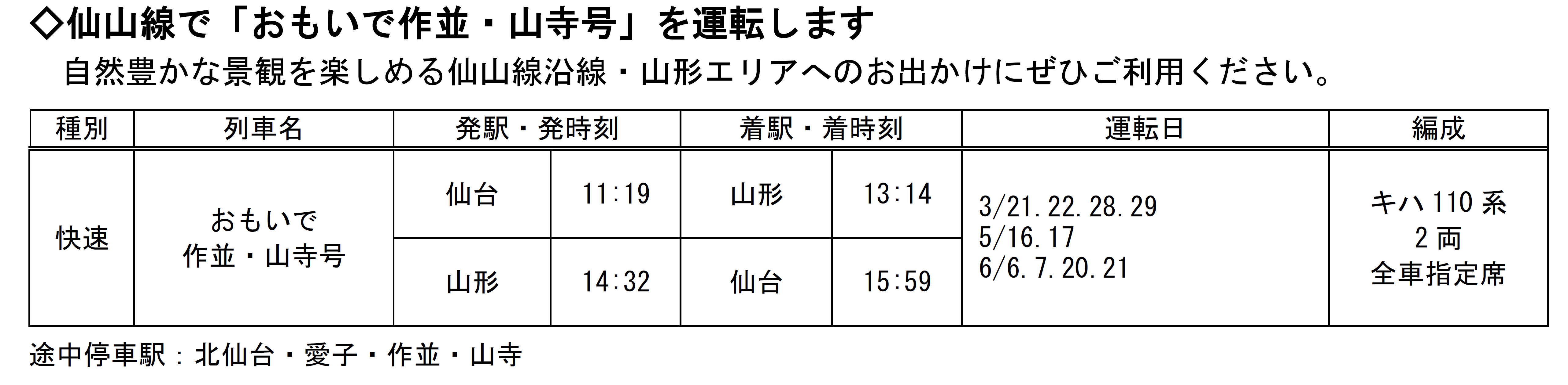 2026年3月1日(日)~6月30日(火)の期間に、運行される山形県内の春の臨時列車をお知らせします!