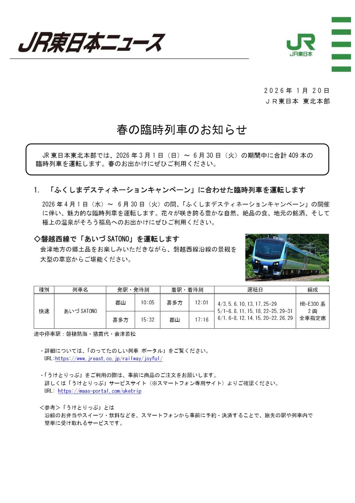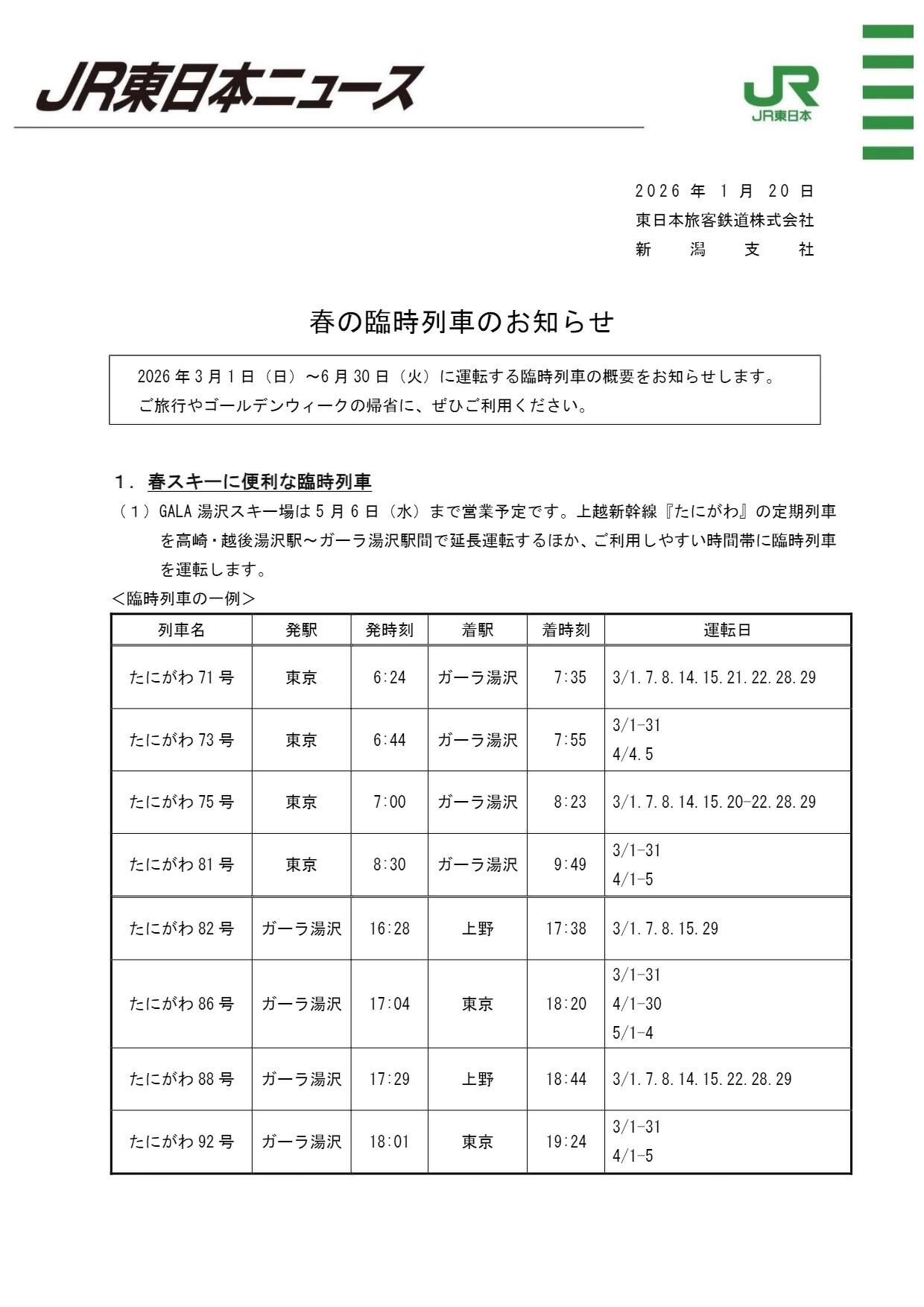 2026年春の臨時列車の運行について